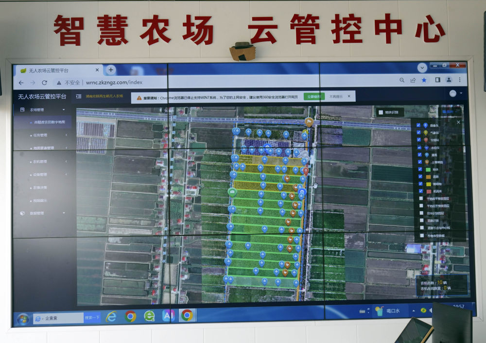\n\t“现在种植和收割不仅用到了各种无人驾驶农机,物联网设备也能承担许多工作。”她指着农田旁的苗情监测摄像头说,当发现水稻出现缺水等情况,农户通过App简单操作即可实现精准灌溉。