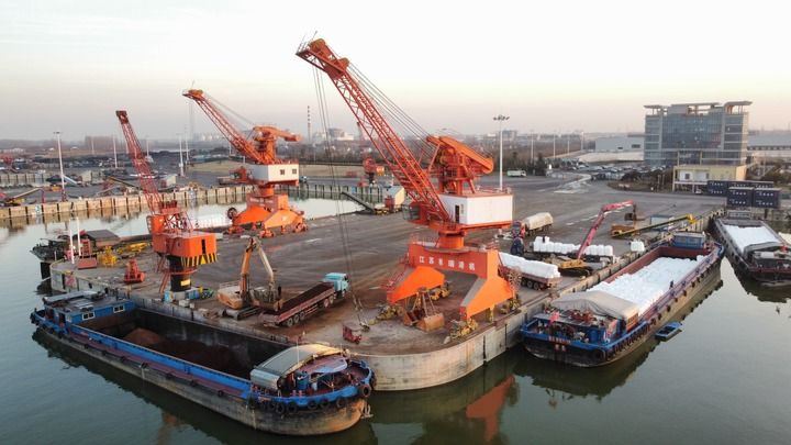 \n\t这是2025年1月7日拍摄的周口中心港范营作业区。新华社发 (刘俊涛摄)